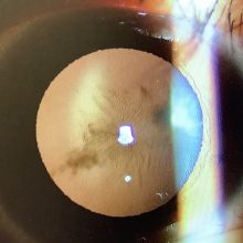 今日の白内障の手術の患者さんの一人は24歳の男性の方で、3週間前の会社の健診で右眼の視力低下を指摘されて先月の初めに受診され、後嚢下の白内障を認めました。左眼の視力は1.2まで出ていたのでさほど不自由はないようでしたが、右眼は0.3まで下がっていて、放っておいてもよくなることはないので、手術をさせていただくこととなりました。