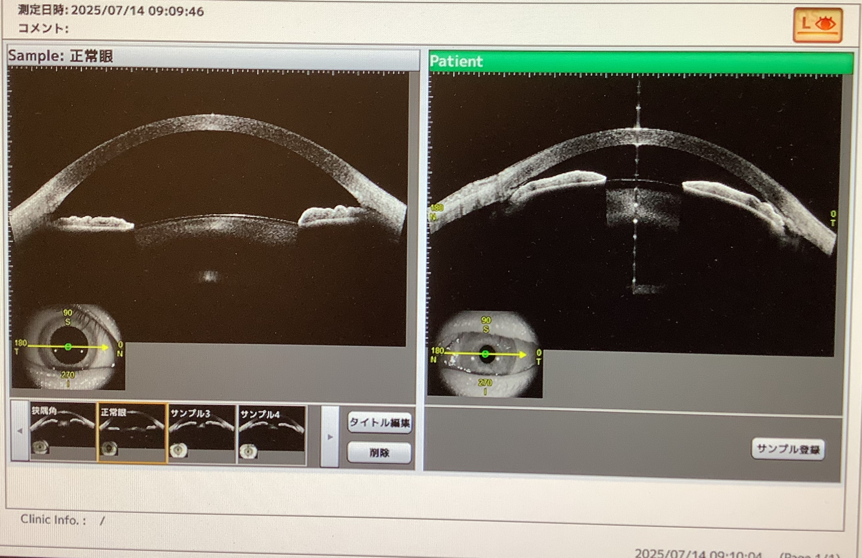 この方は両眼とも前房が非常に浅く、左眼は眼圧も高く、緑内障発作を起こしかけているような眼で、昨日の手術でも確かにチン小帯が弱く、カプセルエキスパンダーという水晶体を支える補助器具を使っての手術となりました。20分弱とちょっと時間はかかりましたが、なんとか無事に白内障を取り除け、眼内レンズを入れて手術が終えられ、今日の診察でも経過良好でよかったです。