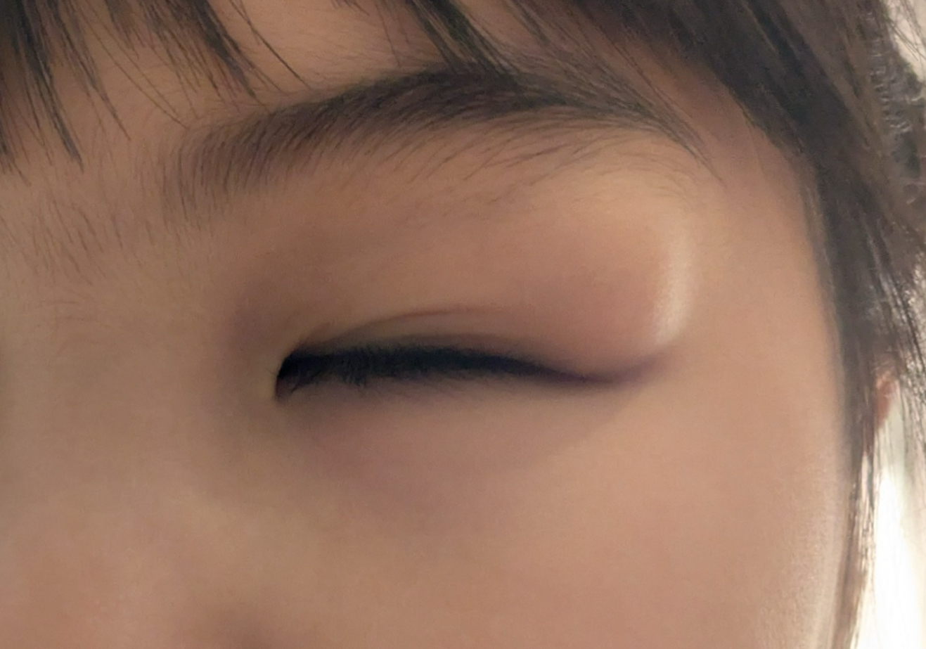 今日の手術では4歳の女の子の左まぶたのできものの摘出の手術がありました。子どものまぶたのできものというと、霰粒腫のことが多いですが、霰粒腫まぶたの中にある瞼板という板状の軟骨のような組織から発生するのでまぶたの縁のあたりに腫瘤ができることが多いですし、組織を分解する酵素を出すので皮膚の赤みを来すこともあります。今回の女の子は左眼上まぶたの外側に皮膚がなだらかに盛り上がるしこりを認めました。最初、『霰粒腫の切開をお願いしたい』とお母さんから相談いただいたのですが、見るからに霰粒腫ではなく、おそらく“デルモイドシスト”と思われたので、霰粒腫よりは切開に時間がかかるので全身麻酔での手術の方が楽かもしれないとお伝えした上で、こちらでの切開をご希望だったので、手術させていただきました。