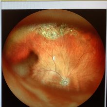 白内障の手術の後、眼内レンズが入っている水晶体の袋(水晶体嚢)の後面(後嚢)に水晶体の細胞が増殖して濁りを作ってしまうのが後発白内障ですが、今日の外来では、他院で後発白内障の治療の後に網膜剥離が起こってしまい、網膜剥離の手術を行った後の経過観察の目的で70代後半の男性の方受診されました。
