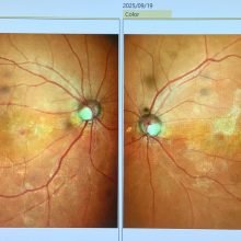 今日、眼瞼下垂の手術目的で受診された70代の女性の患者さんは視力も右が0.4、左が0.2まで下がっていました。両眼とも視力は下がっており、特に左眼がだいぶ見えにくそうでしたが、元々、通院していたクリニックの先生からは『いずれ右眼も見えにくくなったら両眼の白内障の手術をしましょう』と言われていたそうです。3Dの遠視もあり、確かに片眼の手術は、左右のバランスが悪くなり、術後の眼鏡が作りにくくしにくいのはあるかもしれませんが、遠視や近視が強い人は、両眼の白内障が進むのを待つのではなく、片眼が進んでしまったら、バランスを考えるなら、むしろ両眼の手術をする方向で考えてもよいのかなと思います。また、この患者さんでは、白内障の程度は実は左右同じくらいで、左眼の視力がより下がっているのは、眼底に黄斑上膜という病気があったからでした。白内障はどんなに進んでも濁りを取り除き、眼内レンズを入れてあげれば、視力は回復しますが、この黄斑上膜など網膜の病気では、進んでしまうと、いくら手術をきちんとしても、術後の回復の程度が弱くなり、視力が十分改善せず歪みが残ってしまうことがあります。