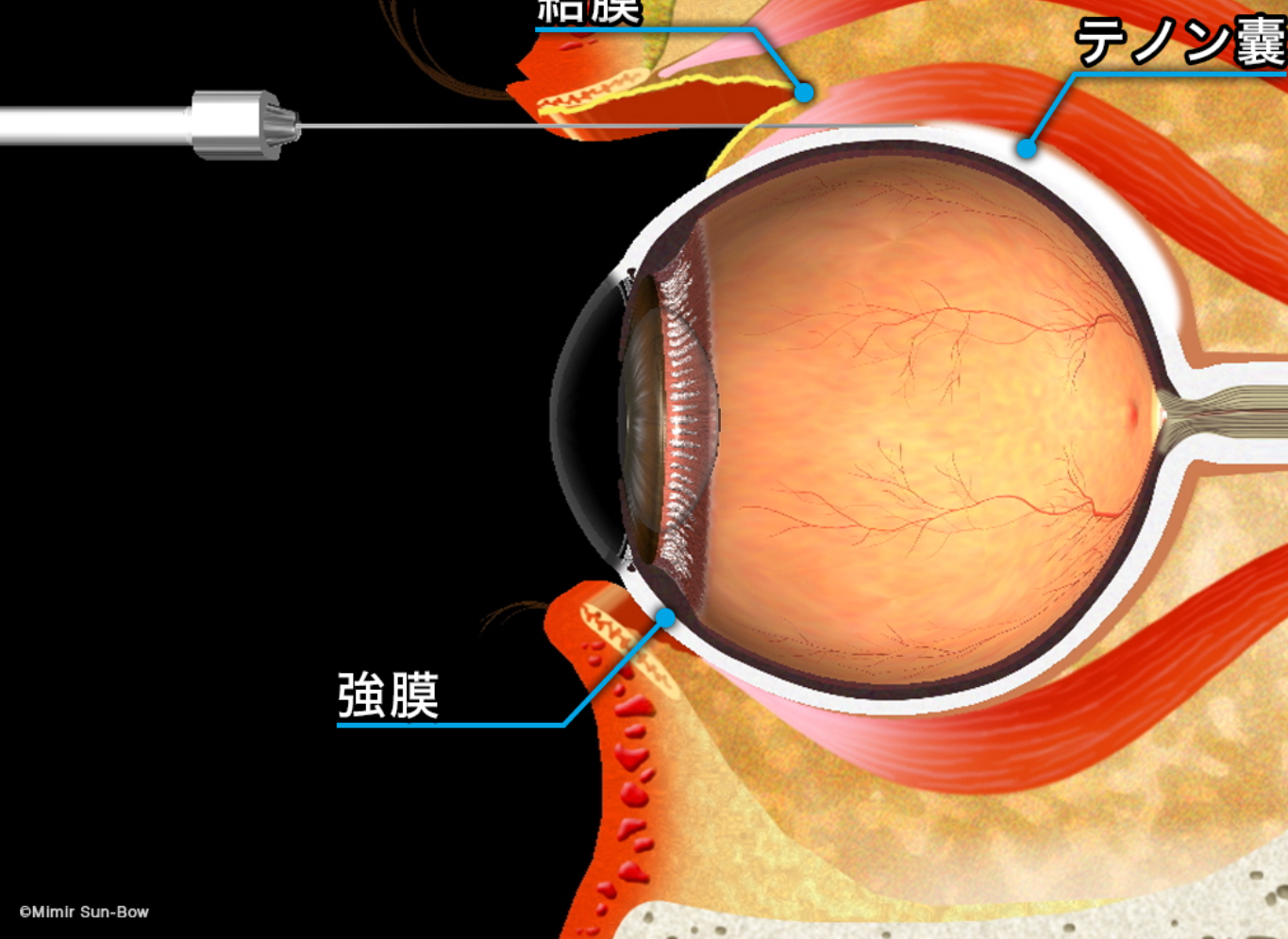 ちなみに、“眼に注射”で今、一番多いのが、この硝子体注射ですが、結膜の下の更に下にあるテノン嚢の下に薬を入れる“テノン嚢下注射”や炎症を抑えるステロイド薬などを結膜の下に注射する“結膜下注射“といった眼に行う注射もあります。